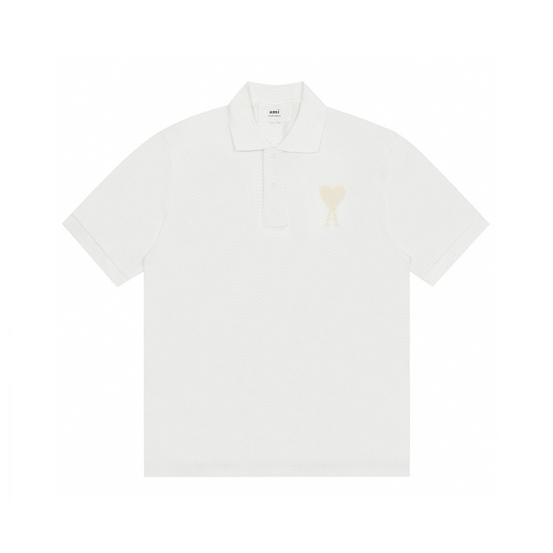 ami Heart Embroidery Polo Shirt White